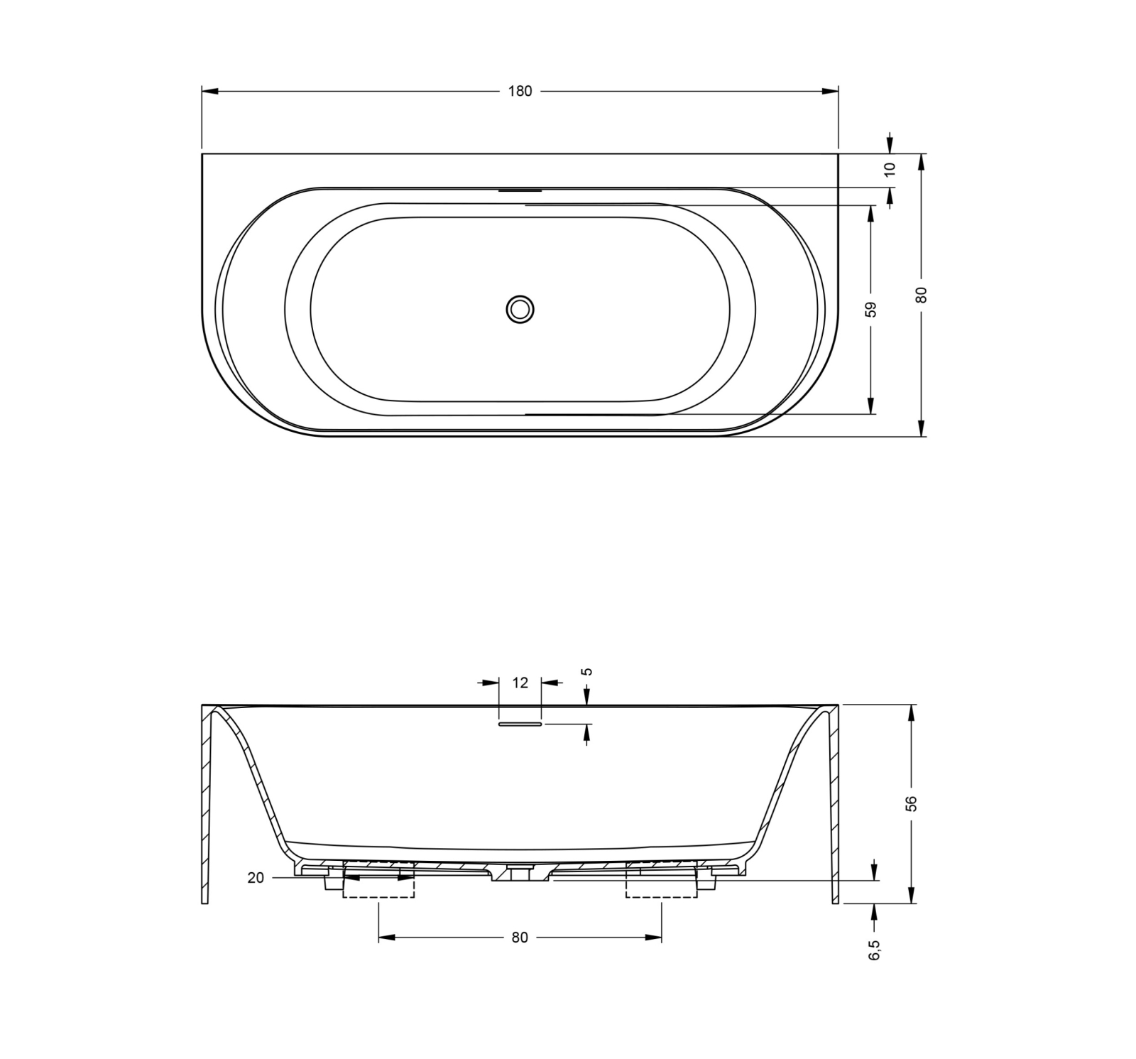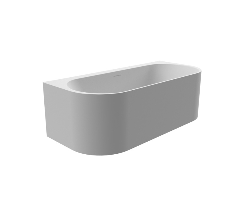 Cadă semidecomandată, de formă ovală, cu suprafață solidă, cu 2 pereți posteriori, cu scurgere internă a căzii și sistem de închidere rapidă.