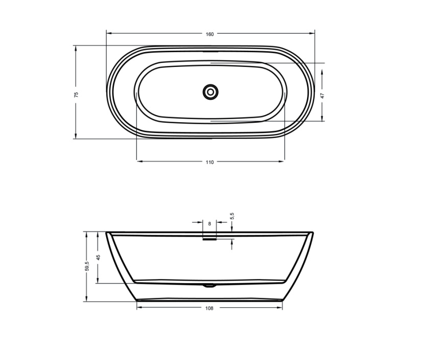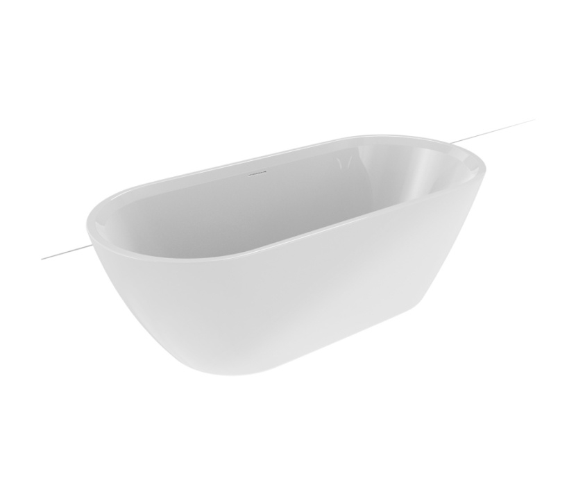 Cadă de baie independentă, din acril alb lucios, cu pereți dubli, cu preaplin încorporat și rabatabil.