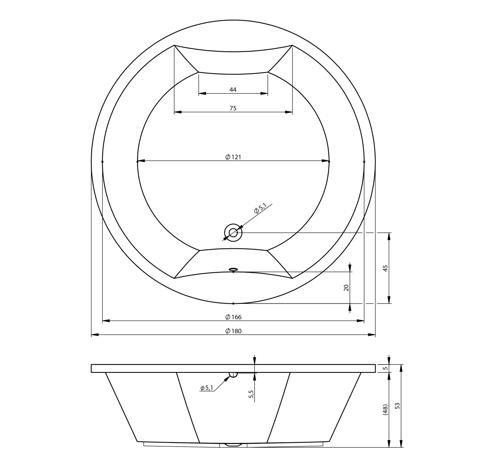 Cadă încorporată, acrilic alb lucios, diametru 180 cm.
