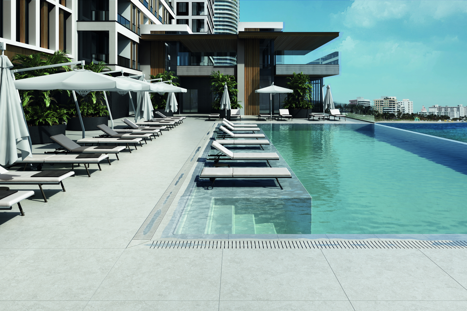 Piscinele infinite au devenit un simbol al designului contemporan și al exclusivității arhitecturale. Estetica lor curată și integrarea perfectă cu orizontul creează o experiență vizuală unică, fuzionându-se cu mediul înconjurător. Utilizarea gresiei extrudate în aceste proiecte nu numai că le sporește frumusețea, ci și funcționalitatea și durabilitatea. Alegerea acestei soluții ridică spațiul dumneavoastră exterior la un nivel premium.
