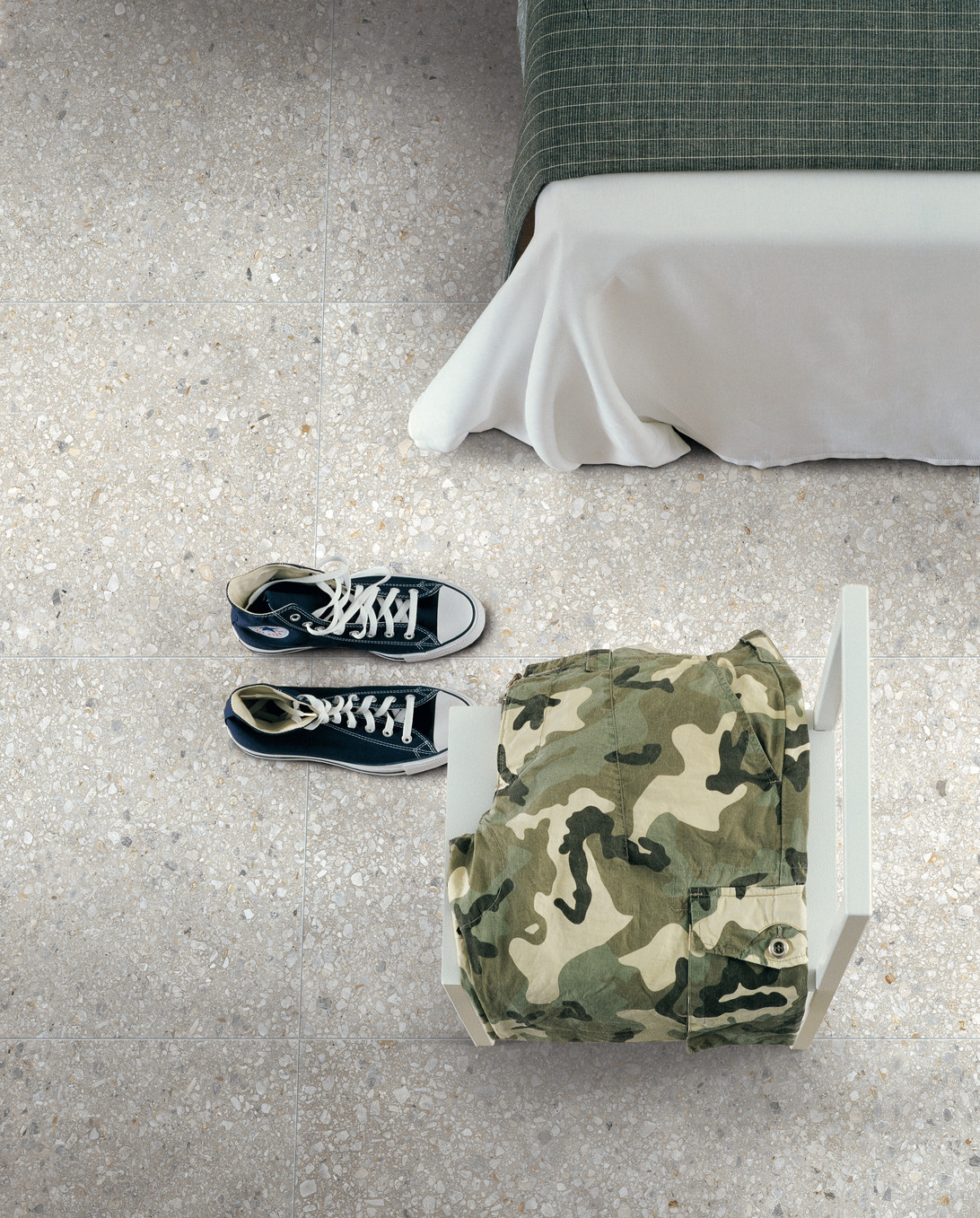 Există două suprafețe de pornire cu care se pot crea combinații multiple care rămân fidele tendințelor și modei de lifestyle: un efect de ciment, cu o estetică urbană și industrială, și un efect original de terrazzo care îmbină elemente materiale ton pe ton, de forme neregulate și dimensiuni variate.
