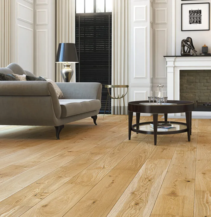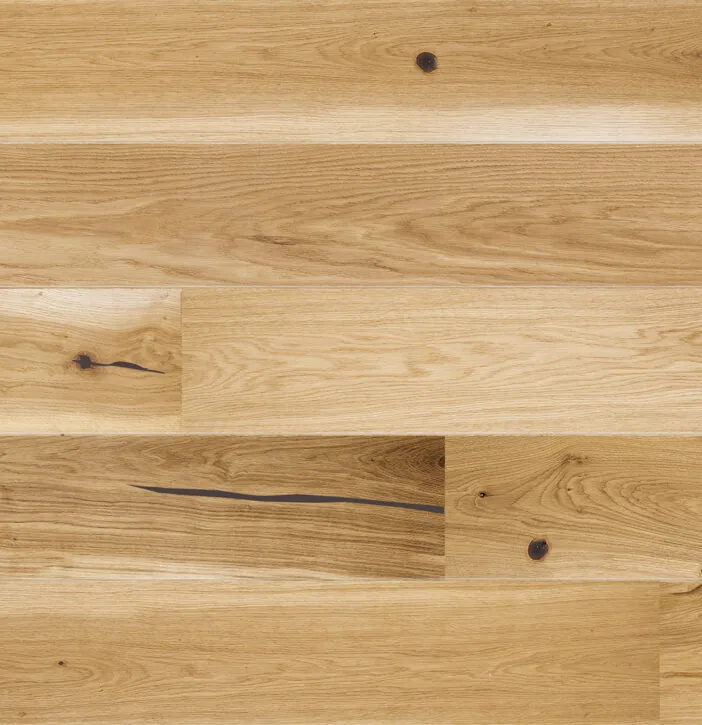 Podea din stejar, cu o singură lamelă, având o lățime de 207 mm și o lungime de 2200 mm, într-o culoare caldă. Caracterizată printr-un aspect rustic puternic, cu numeroase caracteristici naturale ale lemnului. Teșirea pe două laturi îi conferă suplețe. Periată și acoperită cu lac mat.