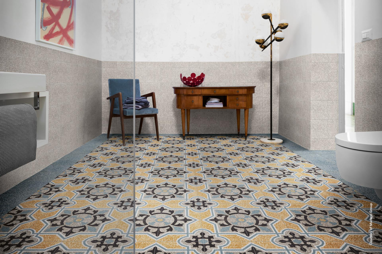 D_Segni Scaglie este inspirat de Seminato venețian și prezintă așchii de marmură lucioase și mate care creează efecte atractive de lumină reflectată pe suprafață. D_Segni Scaglie este disponibil în șase variante de culoare combinate cu șapte decoruri Tappeto și decorul Mix realizat cu 15 motive diferite.