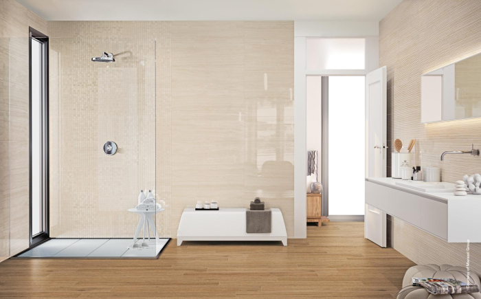 Eleganța eternă a celor mai fine marmuri întâlnește designul contemporan într-o colecție de gresie porțelanată ultra-durabilă pentru pardoseli și monoporoasă în pastă albă, cu grosime subțire, pentru plăci de perete. Opt modele diferite de marmură, în dimensiunile de 60x120 cm și 60x60 cm, cu finisaj mat și 58x116 cm și 58x58 cm, în versiune lucioasă, dialoghează cu șase tapet deosebite, în dimensiunea de 30x90 cm. Suprafețele lucioase ale tapetului sunt completate de structuri tridimensionale și decoruri geometrice, care stabilesc un contrast atractiv cu nervurile marmurei, definind o nouă modernitate.