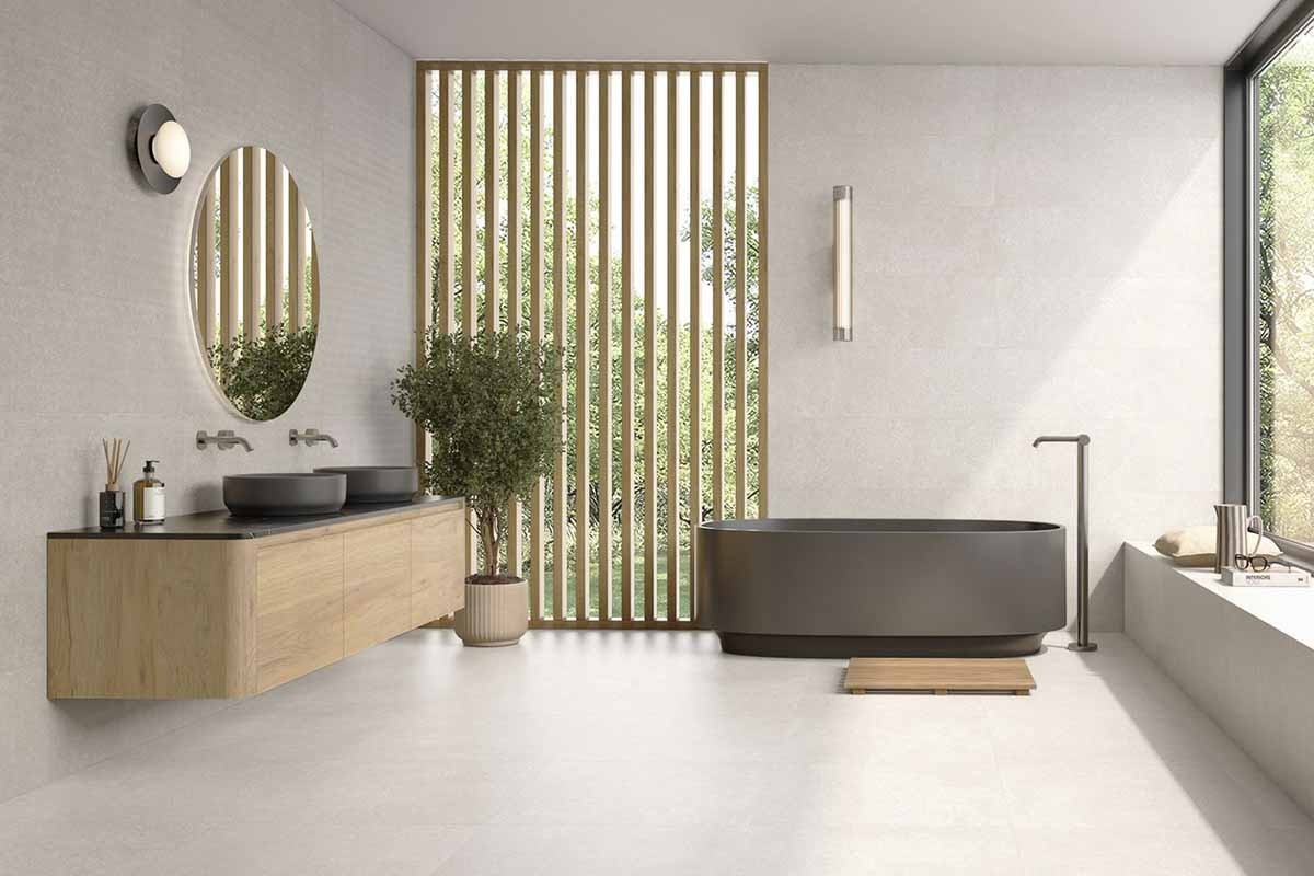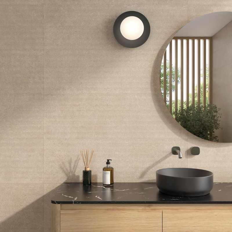 Inspirată de o piatră olandeză de origine naturală, Noordal surprinde bogăția vizuală a formațiunilor calcaroase cu o grafică precisă și subtilă. Suprafața sa seduce printr-o granulație fină presărată cu ușoare variații minerale, care aduc profunzime vizuală și sofisticare naturală. Disponibilă în trei nuanțe — Os, Nisip și Perlă —, colecția oferă o paletă caldă și echilibrată, ideală pentru compoziții calme sau proiecte care caută o conexiune sinceră cu materialele. Este prezentată în acabado mate în formatele 29,5x59,5 cm, 59,5x59,5 cm, 59,5x119,2 cm și 90x90 cm, împreună cu o versiune Grip pentru exterior în 90x90 cm, care permite menținerea continuității estetice în zonele de tranziție interior-exterior. Noordal este perfect pentru spațiile care transmit calm și naturalețe și care se concentrează pe materiale și materia autentică pentru o expresie mai puternică. Decorațiunea Noordal este disponibilă în formatul de 59,5x119,2 cm și în cele trei culori ale colecției — Os, Nisip și Perlă —, ceea ce permite o coerență vizuală totală în compoziții integrate. Aceasta încorporează un relief delicat cu dungi care se întinde pe suprafață în linii orizontale fine și constante, un detaliu subtil ce introduce ritm vizual și profunzime tactilă pentru a altera seninătatea pietrei, consolidându-i caracterul conținut, elegant și material.