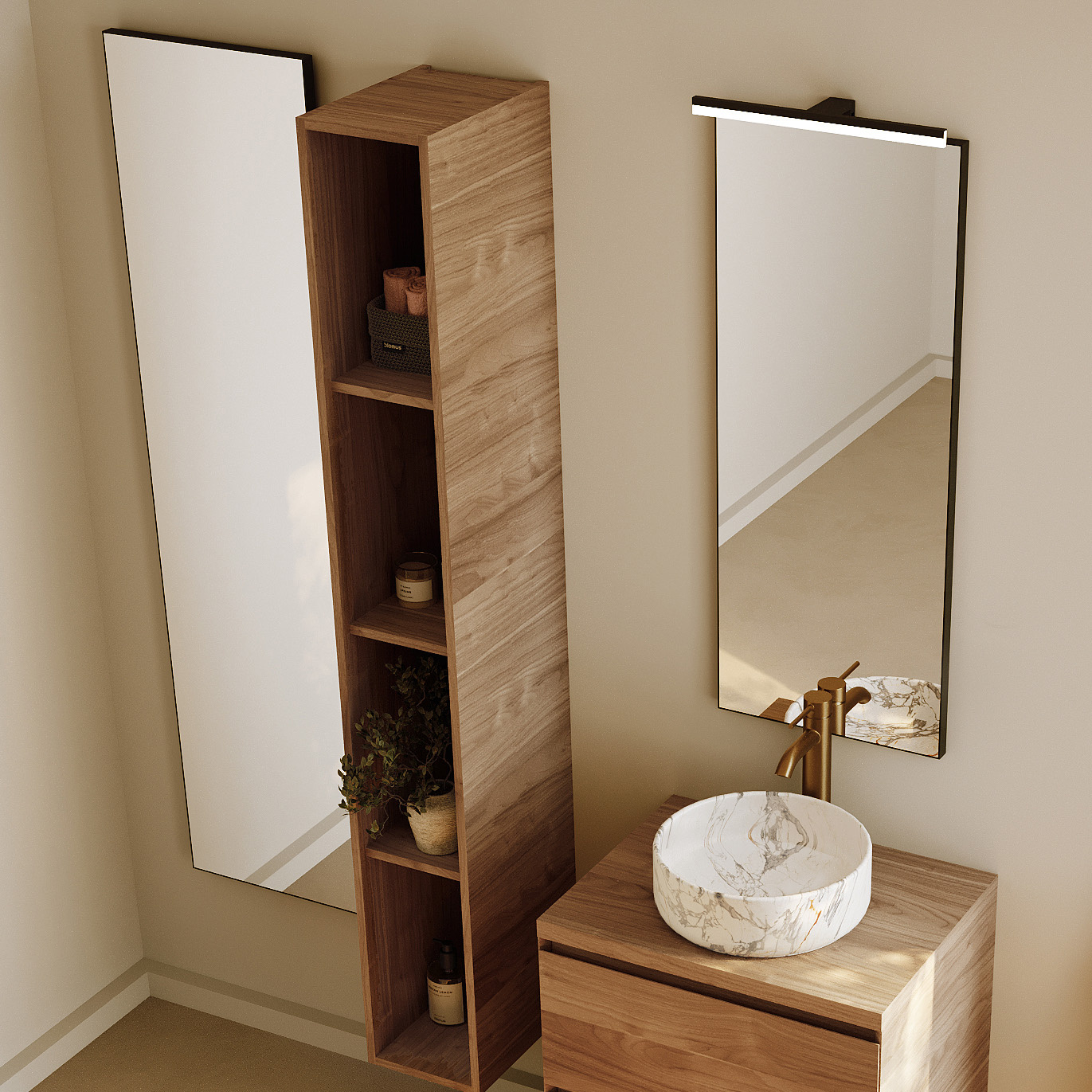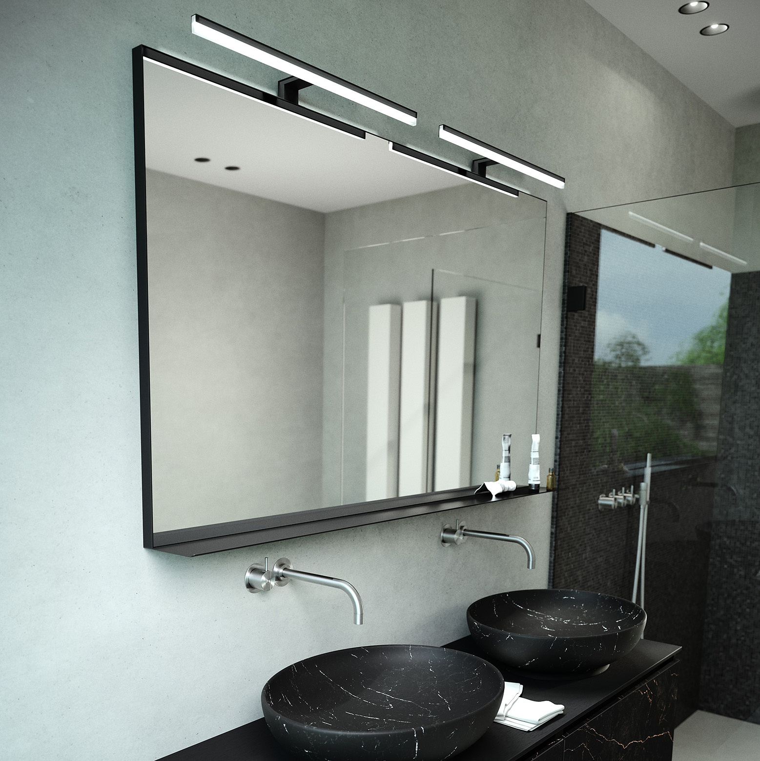 Oglindă cu ramă metalică neagră mată, cu o adâncime de 2 cm. Echipată cu senzor de mișcare, excluzând iluminatul. Este disponibilă și încălzirea oglinzii pentru această oglindă în dimensiunile 60 x 80 cm, 80 x 80 cm, 100 x 80 cm și 120 x 80 cm.