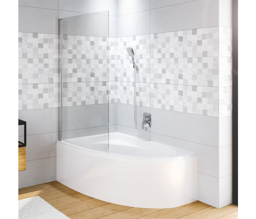 Aveți o cadă încorporată Aryl și doriți să o folosiți și pentru duș? Atunci acest paravan de cadă din sticlă ușor curbat se potrivește perfect pe margine. Acest lucru va menține podeaua băii uscată în timp ce vă bucurați pe deplin de duș. Puteți roti paravanul spre interior sau spre exterior. Și este, bineînțeles, disponibil pentru ambele versiuni de căzi Aryl. Asigurați-vă că comandați modelul cu profilul pe partea corectă. Consultanții noștri vă vor ajuta cu plăcere!