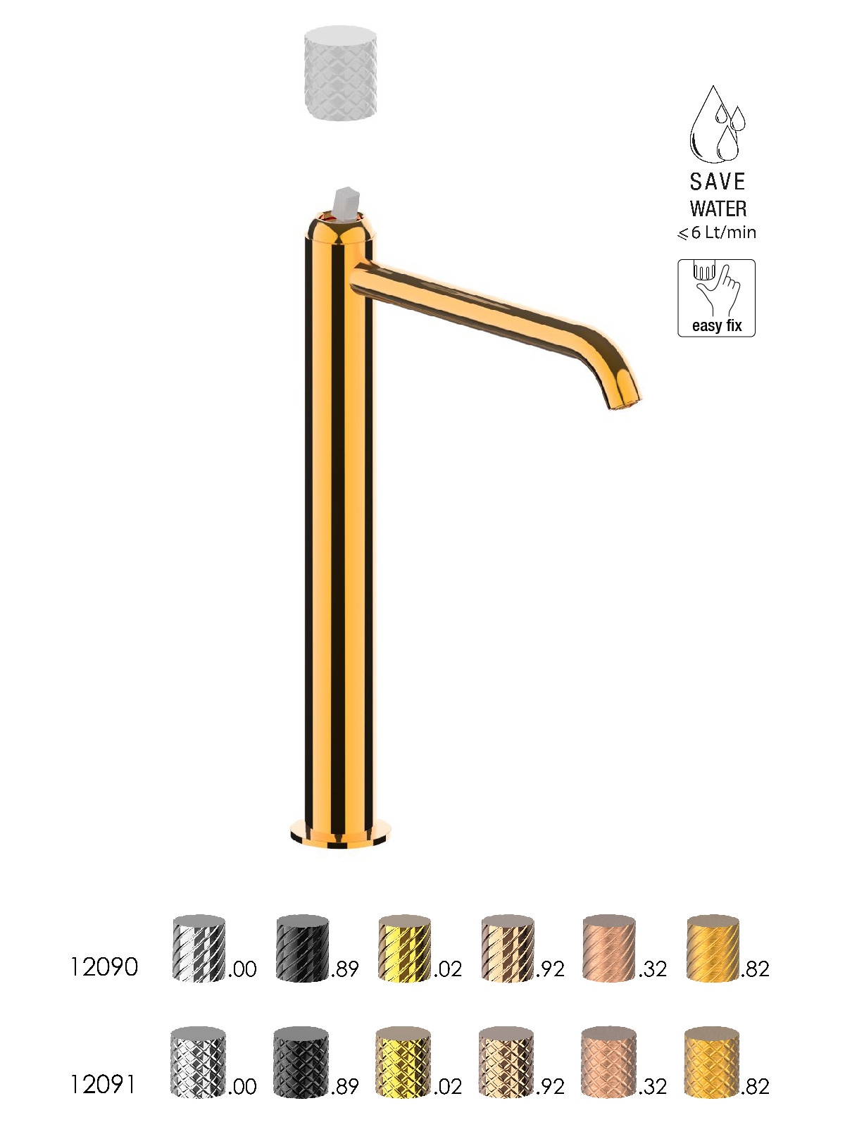 Fratelli Frattini Baterie lavoar cu monocomandă versiune înaltă, fără scurgere