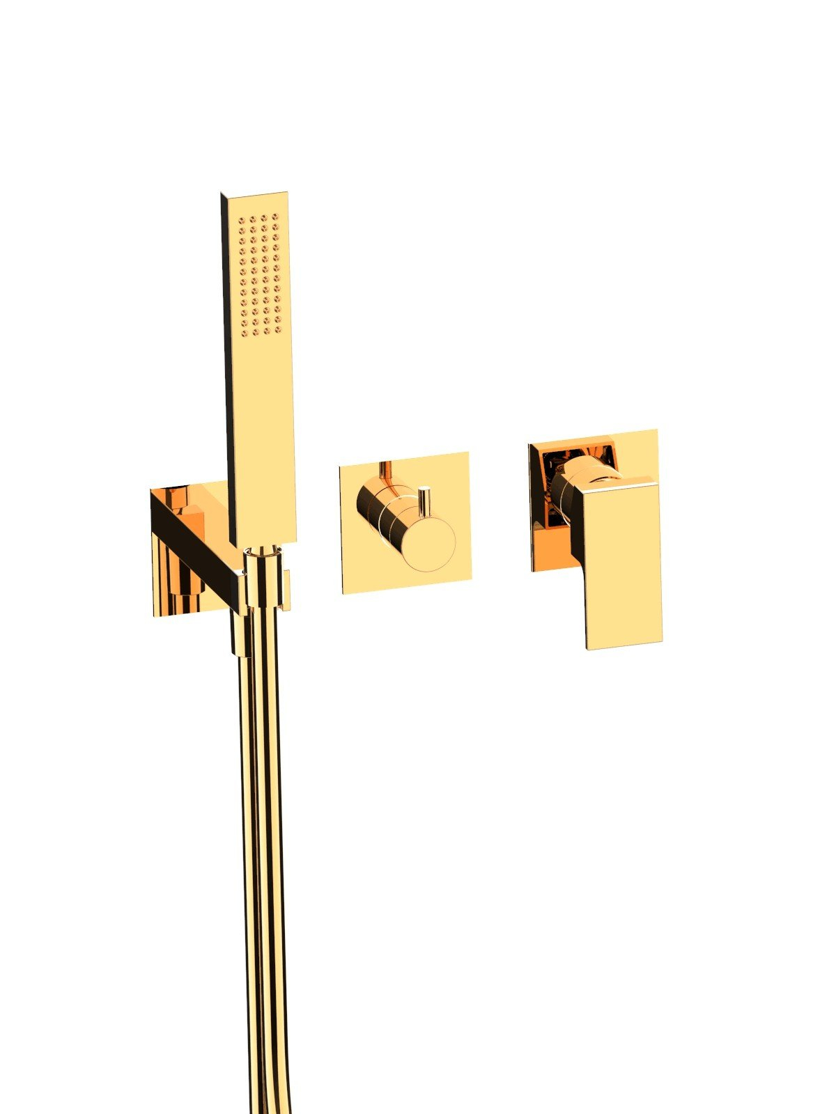 Componente externe vizibile Baterie încorporată cu 3 căi, cu deviator cu discuri ceramice și duș manual, plăci din alamă - Vita Due - Contemporary