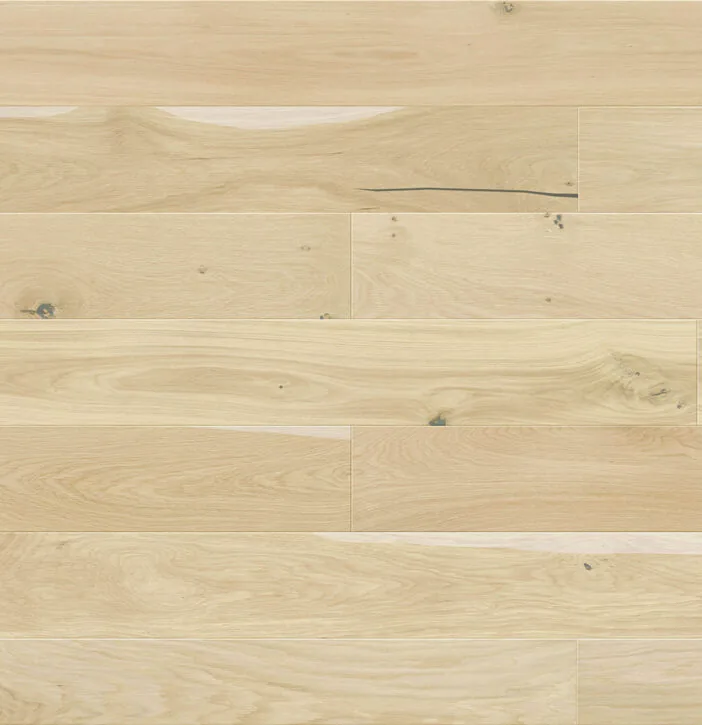Plăci cu 1 lamelă cu lățimea de 155 mm într-o nuanță de crem deschis. Datorită șanfrenării pe patru laturi, pardoseala dă impresia de suplețe. Parchet finisat cu lac mat.