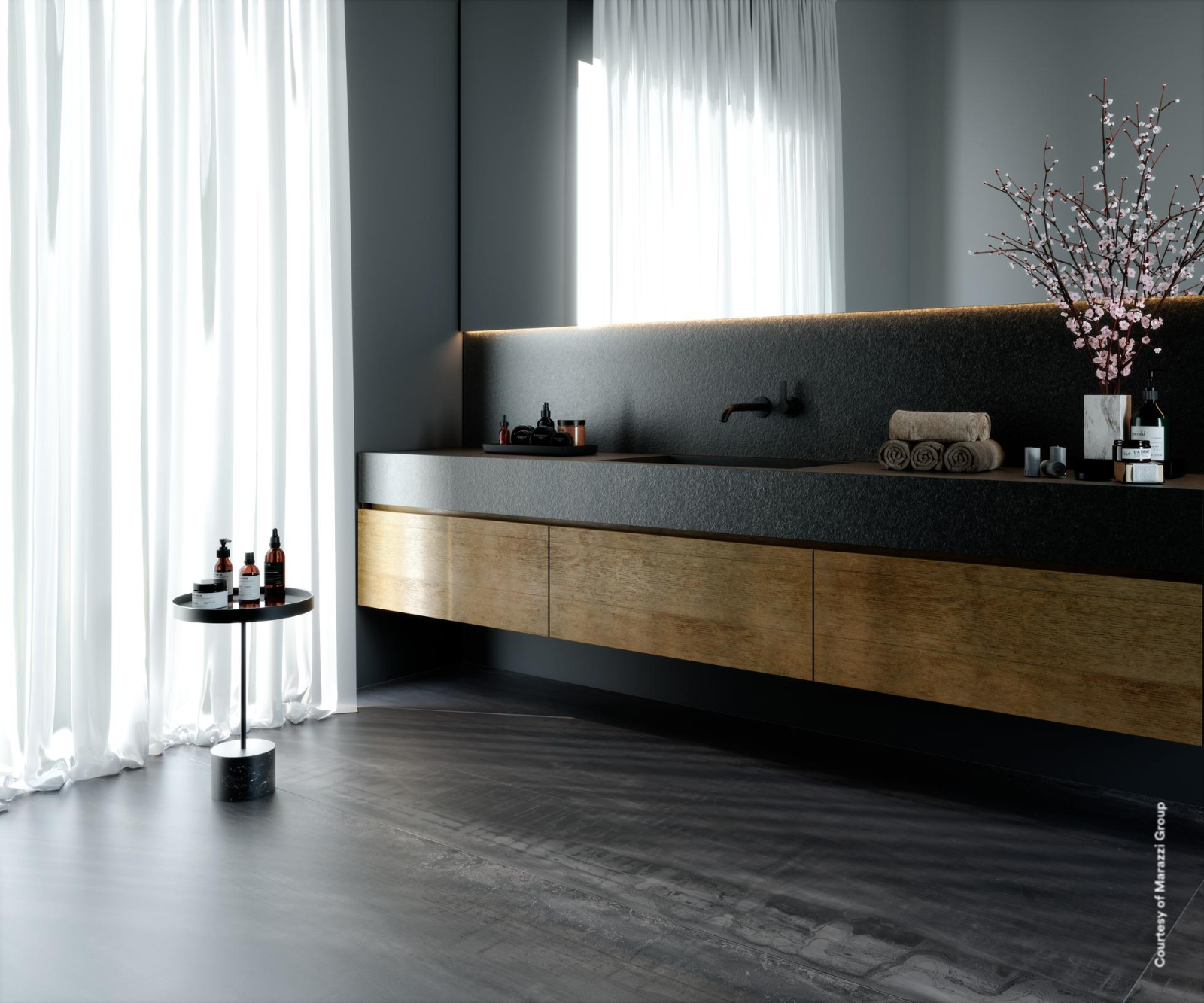 Farmecul mineral al metalelor în trei culori cu o suprafață irizată izbitoare, accentuată de plăci mari care oferă posibilități de design și mai unitare. Condițiile ideale pentru crearea liberă a unor compoziții infinite de forme și a unor soluții de mobilier captivante, inclusiv mese și blaturi de bucătărie.