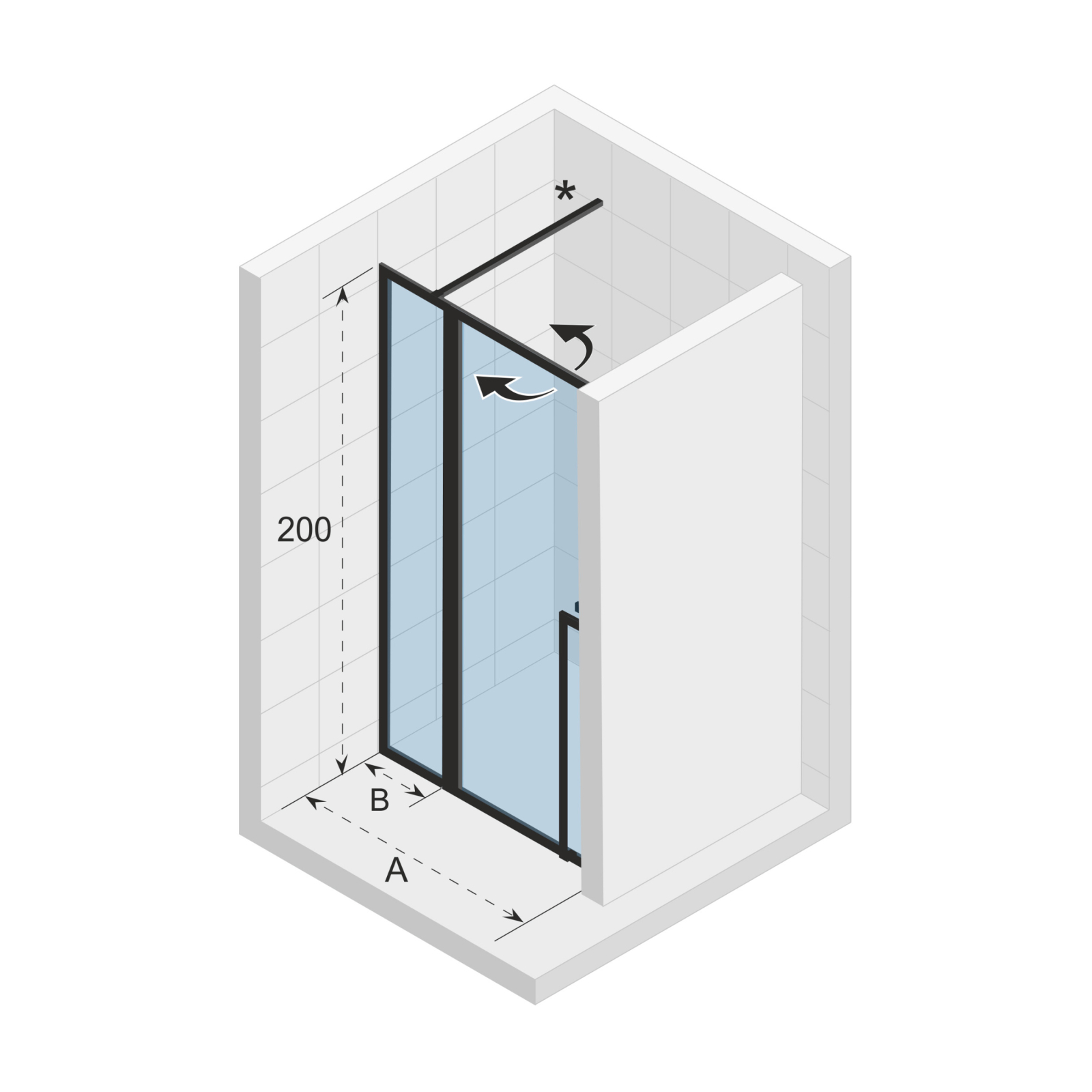 • Perete fix cu ușă de nișă, se deschide spre interior și spre exterior